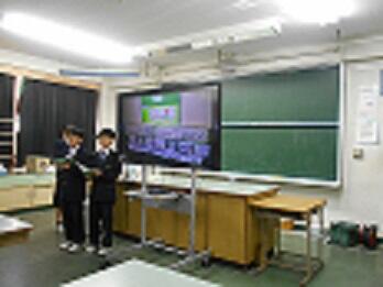 3年生の剣道の授業では、基礎的な練習の後、かかり稽古をします。グループで稽古の様子をタブレットで撮影し、授業の最後に「どこが良かった、悪かった」とアドバイスしながら授業をまとめていました。