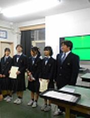 本日5時間目は全校集会でした。学級委員の発表、ルールメイキング委員会、表彰などを行いました。表彰は、ふるさと祭りのボランティア表彰、千葉県俳句大会、サッカー、女子フェンシング、男子ソフトテニス部、吹奏楽部、卓球部新人戦の結果などを行いました。