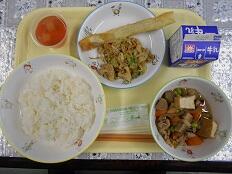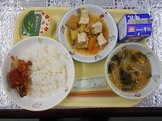 本日の給食は、ご飯・白身魚のチリソースあえ・きのこたっぷり汁・生揚げのそぼろ煮・抹茶ゼリーでした。チリソースと白身魚の愛称は抜群で、ご飯が進みます。味噌汁もその名の通り、きのこがたっぷり入っていて食べ応えがありました。抹茶ゼリーもアクセントがあって良かったです。