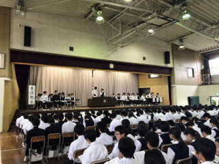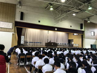 また、今の二中生にとって、初めて全校生徒が体育館に集まりました!