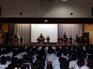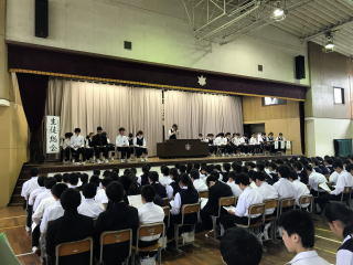 生徒全員が集まって集会を開くことが難しい状況にあるため、それぞれの内容をビデオに撮り、それを各教室で視聴する方法で開催しました。