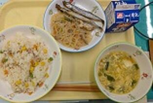 本日は給食最終日。生徒たちの楽しみにしていたクリスマス献立でした。コーンピラフ・ローストチキン・白菜のスープ・カレーポテト・クリスマスいちごケーキでした。