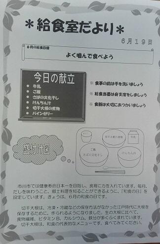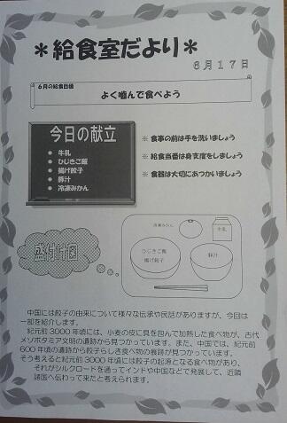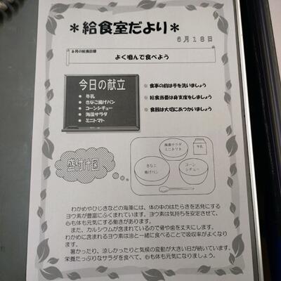 栄養教諭の先生をはじめ給食室で働いている方々は、生徒の皆さんに安全で栄養のある給食を毎日届けてくれています。人には好き嫌いがあって、苦手な給食が出ることもあると思います。ただ、給食に携わってくれている方々(農家の方や給食の食材を運んでくれる方、調理してくれる方々など)の気持ちだけは忘れないでほしいと思います。皆さん、ありがとうございました。