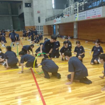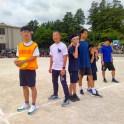 白百合学級と先生方の混合チームが2チームに分かれて競う、メジシンボール。互いに声を掛け合って…先生も生徒も全力です!