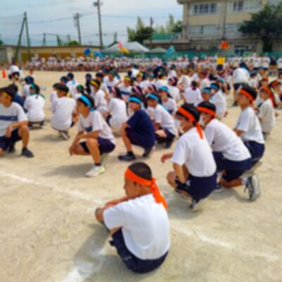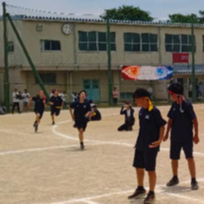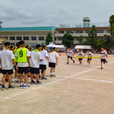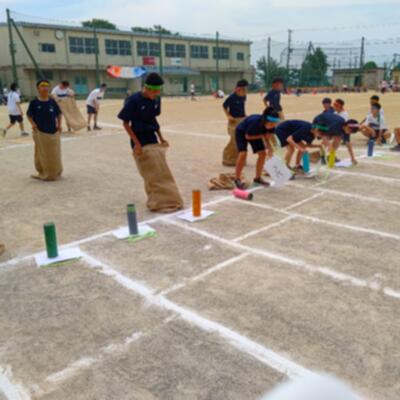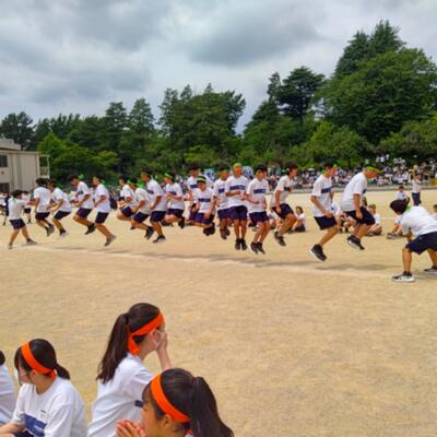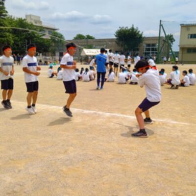 学級対抗の長縄です。各クラス2チーム作って、7分間で跳べた回数の合計を競います。