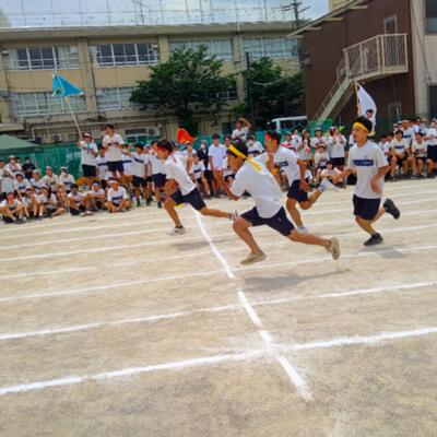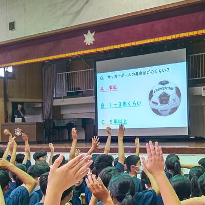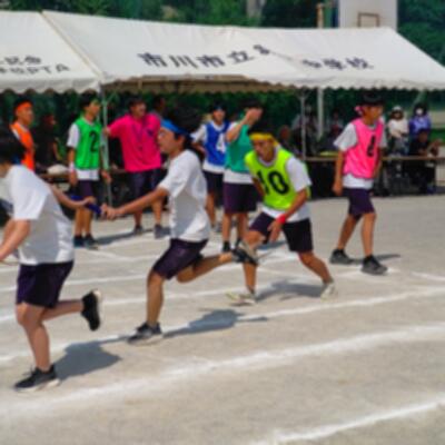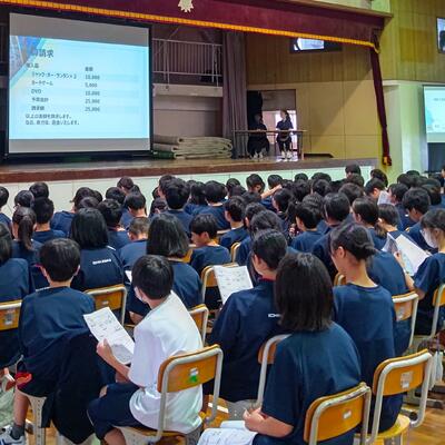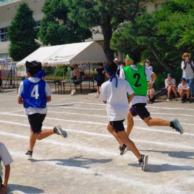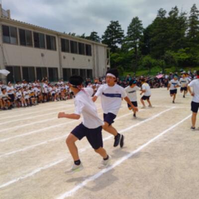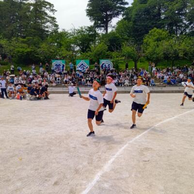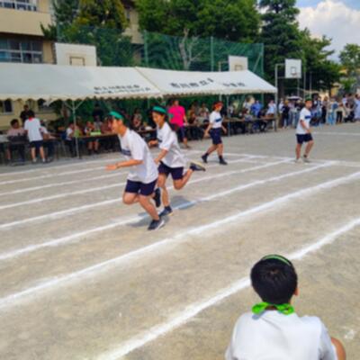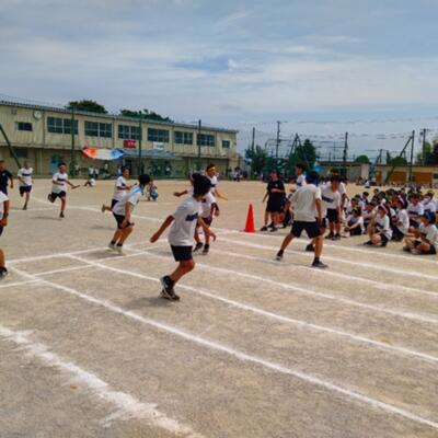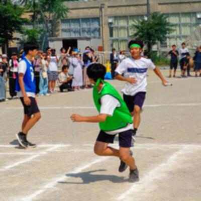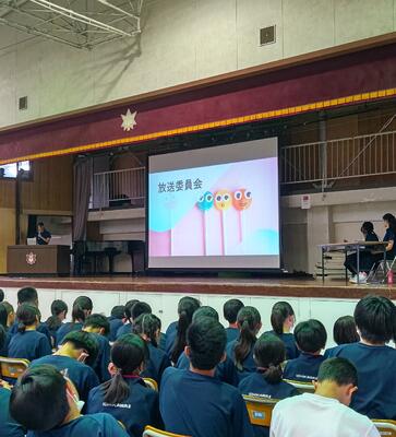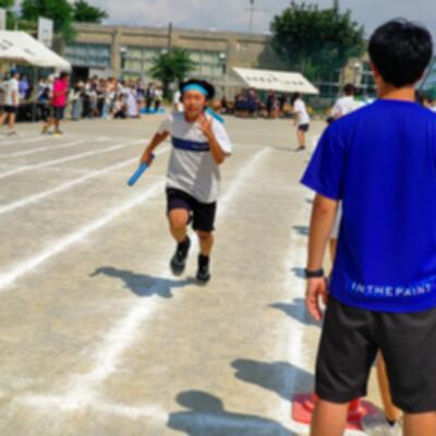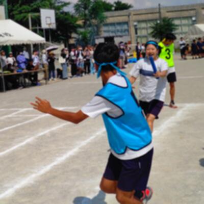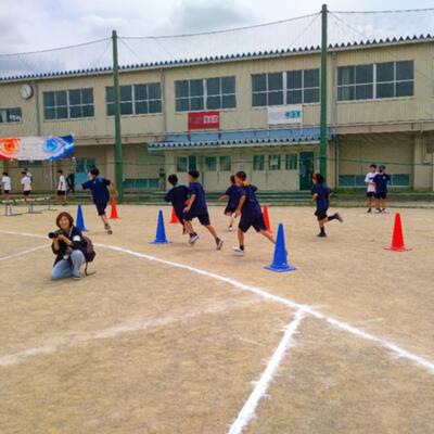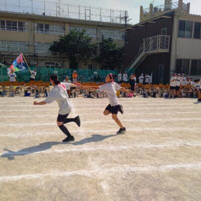 まずは「須和田二丁目マラソン」。各学年と先生方の中から厳選されたメンバーが、全校生徒が見守る中、ステージで各教科にちなんだ「お題」をクリアしながら、体育館をリレー形式で周回するという、とてもよく考えられた企画。パワーポイントやスポットライトを駆使した演出も効果抜群で、めちゃくちゃ盛り上がりました。