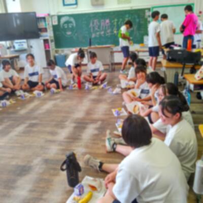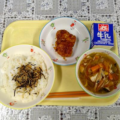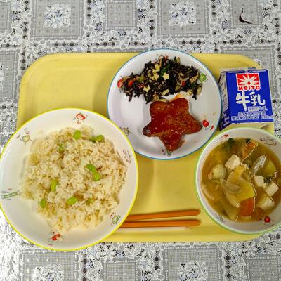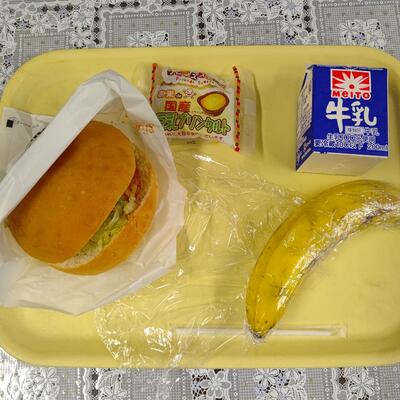 本日は体育祭の予備日なので、体育祭があったとき、椅子がなくても食べやすいようにと、2種類のおにぎりが出る予定でした。