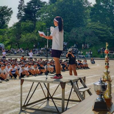 表彰に続いて、紅白応援団長、体育委員長の挨拶です。 それぞれの思いのこもった一言が、皆の胸に響きました。