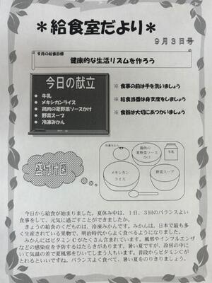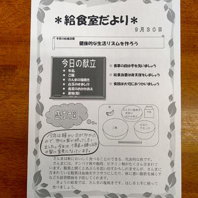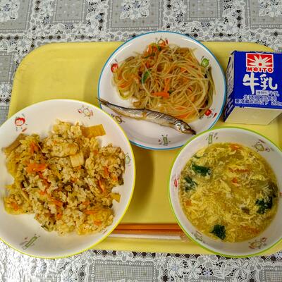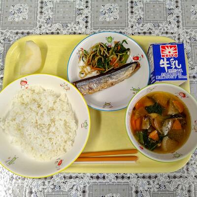 シンプルな味付けに、秋刀魚の旨みがよく感じられて絶品。給食だよりにも書かれてますが、栄養たっぷりで血液サラサラ成分も入って、健康にも言うことなしです。
