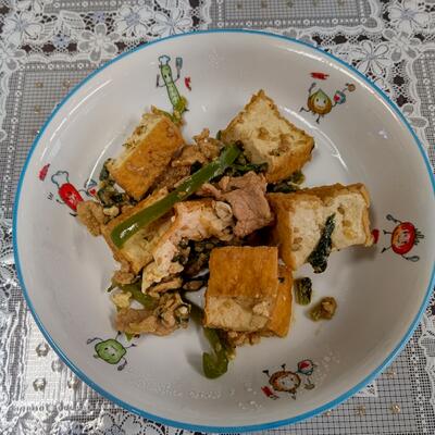 いろんな大きさの生揚げがたくさん入って食べ応えがあり、豚肉の旨みとごまの風味が豆腐の味を引き立てます。