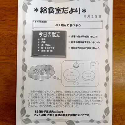 明日6月15日の千葉県民の日にちなんで、千葉県産の食材をたくさん使った献立です。