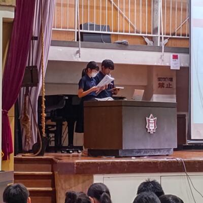 各クラスで発表会を行い、選ばれた人たちによる、学年発表会です。