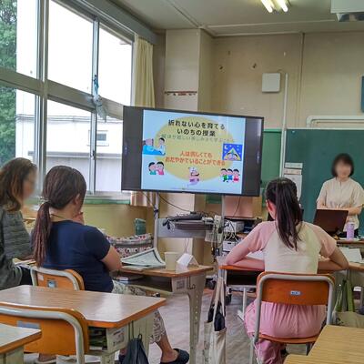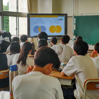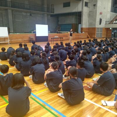 キャリア教育の一環として、外部から講師を招いての講演会です。