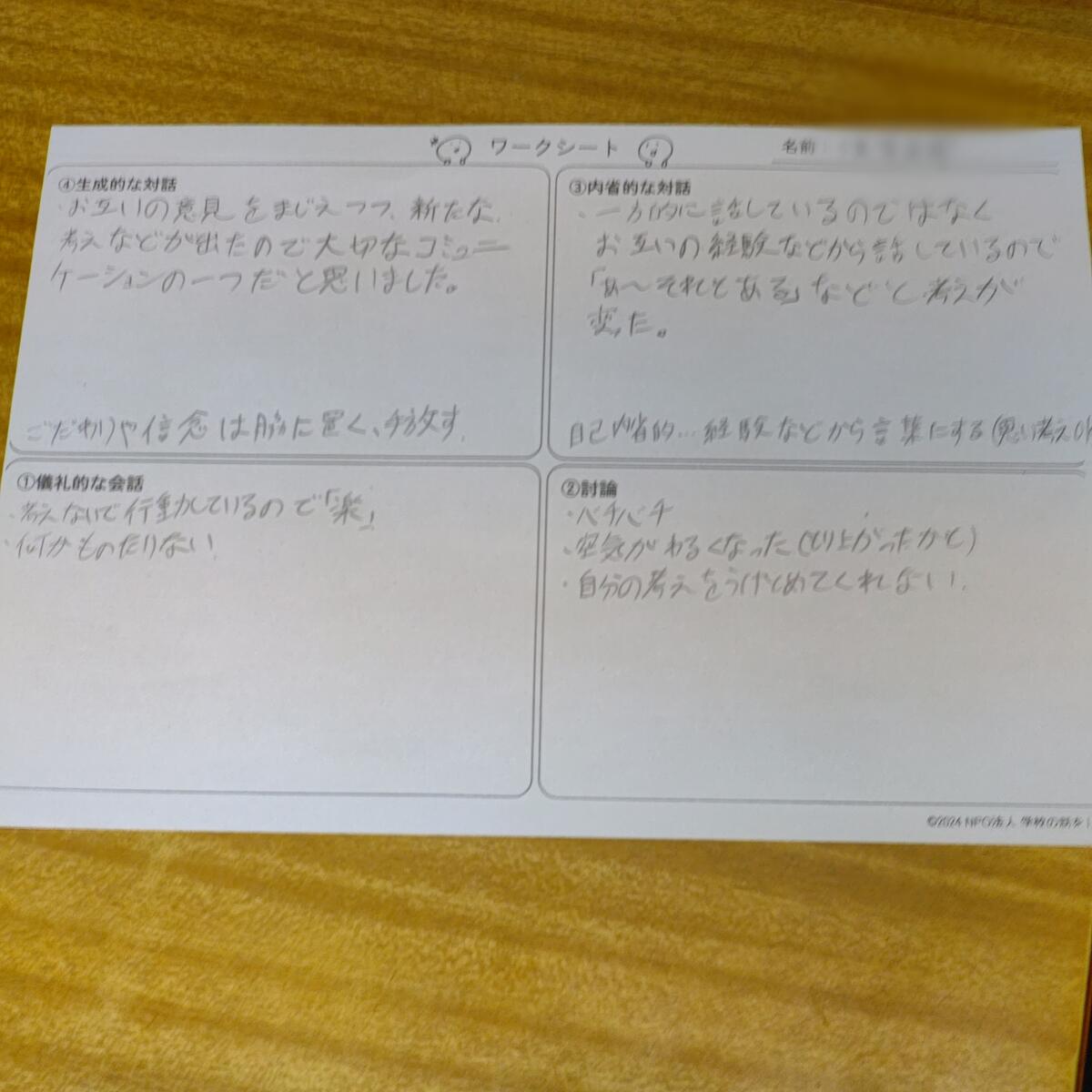 それぞれが発表するエピソードに、感心する声がでたり、思わず笑ってしまったり…一人一人個性があって、みんないい話です。