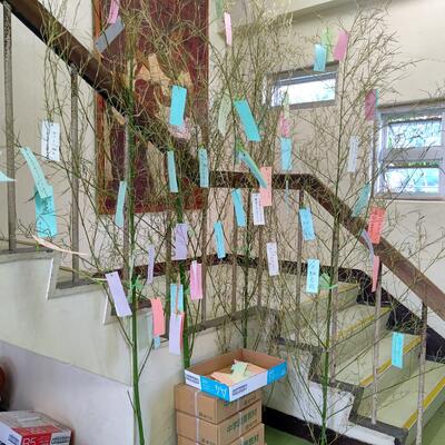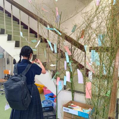 続いては各学年に分かれて、全員参加のレク。1年生は指定された教室に行って写真との違いを見つける「間違い探し」、2年生は指定の教室内に隠された様々な「顔」を探す「顔探し」、3年生は指定されたエリア内に隠れた「星」と3年生の先生方を見つける「かくれんぼ」…どの学年もみんなで協力し、楽しみながらも真剣に高得点を目指す生徒たち。これもとてもいい企画でした。