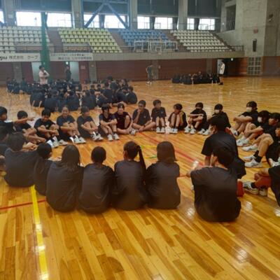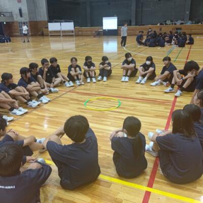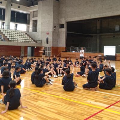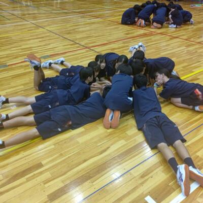 あっという間に再び体育館に集まる時間となり、第二部の開始。「二中生全員で楽しめるように!」と今年から登場した新企画、「全校レク」です。