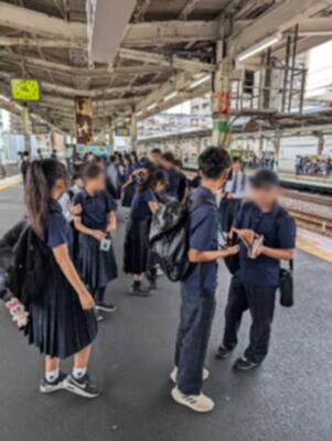 通勤ラッシュの時間帯、周囲に気を使いマナーを守って行動…さすがニ中生。