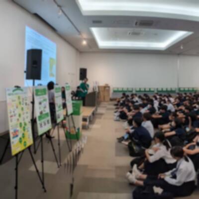 午前中はクラス単位のグループに分かれ、イオンのSDGsの取組、フードロス対策、モールの概要などについて学んでいきます。