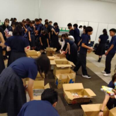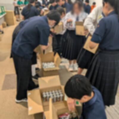 フードドライブ仕分け作業です。二中生の作業が早くて、STAFFが驚いています。