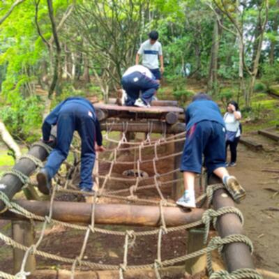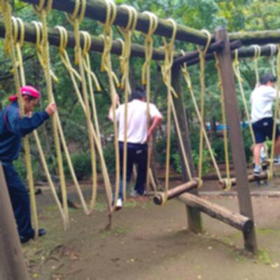 午前中は「ありのみコース」で、フィールドアスレチックに挑戦。
