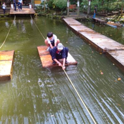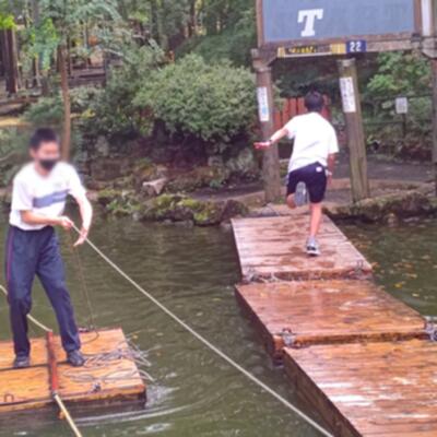 とうとう一人が水没…それをきっかけに落ちるのが当たり前…みたいになってきて、最後はほとんどの人がずぶ濡れに……着替えを持ってきておいて本当によかった(^o^;)