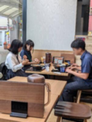 モール内の店舗で、各自が思い思いの昼食を取ります。友達と食べるお昼ごはん…笑顔弾ける楽しい時間になりました。