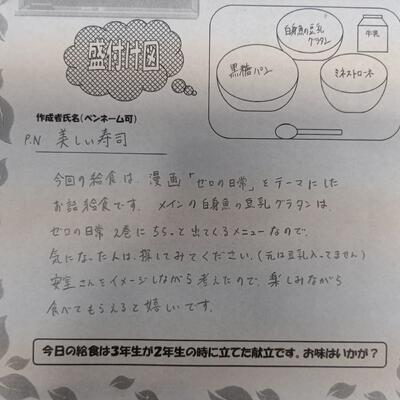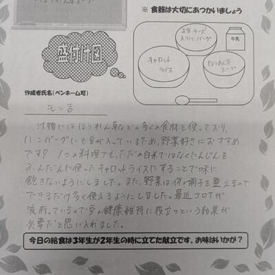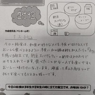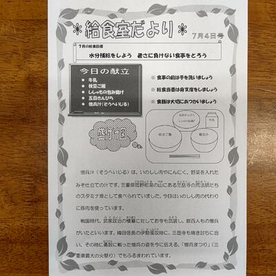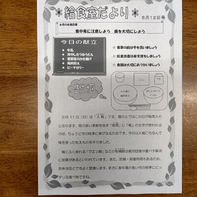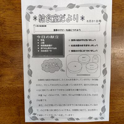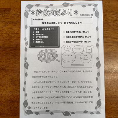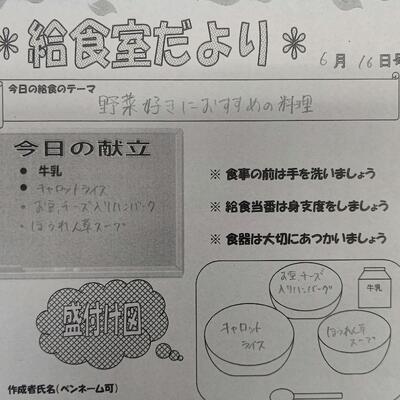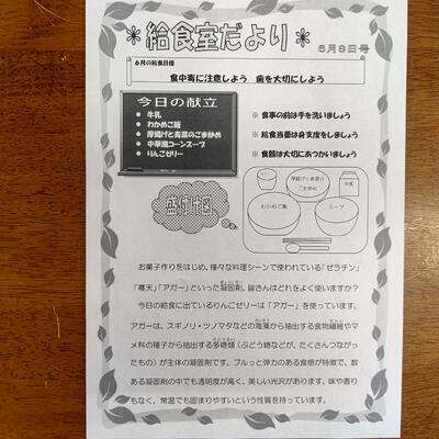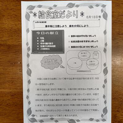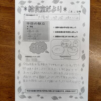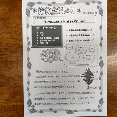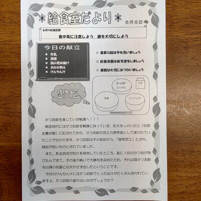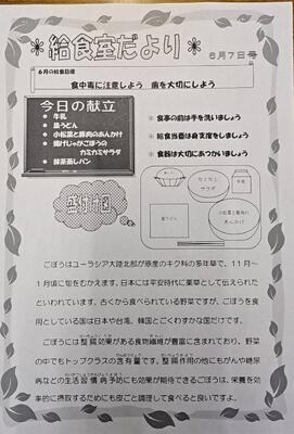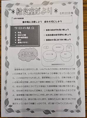 「給食室だより」は栄養教諭から、毎日、全クラスに届きます。