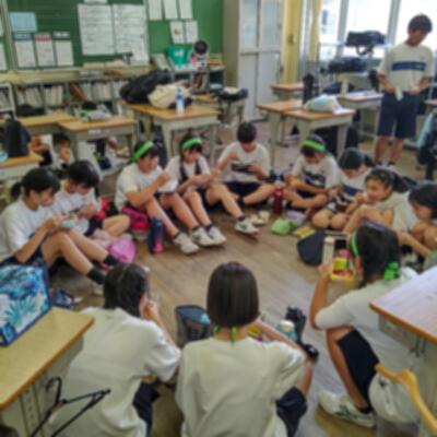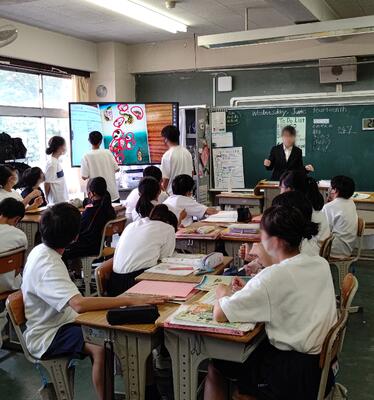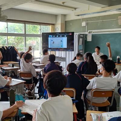 講習を受けて資格を持った先生が、各クラスにいる生徒に画面越しに話しかけて進めていきます。生徒達はRPGゲームをしているような感覚で、楽しく取り組んでいました。