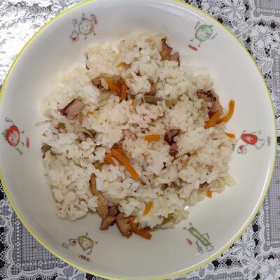 歯ごたえのある「たこ」のぶつ切りがたくさん入った「たこめし」。