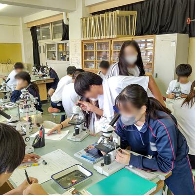 さすが3年、顕微鏡の扱いはバッチリで、花粉はとてもよく見えています。
