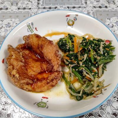 大きくて食べごたえのある油淋鶏(ユーリンチー)。