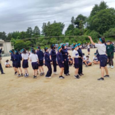 写真は学級対抗大縄跳びの練習…なかなか回数が伸びず、苦戦中!