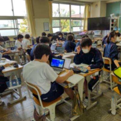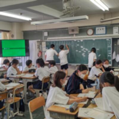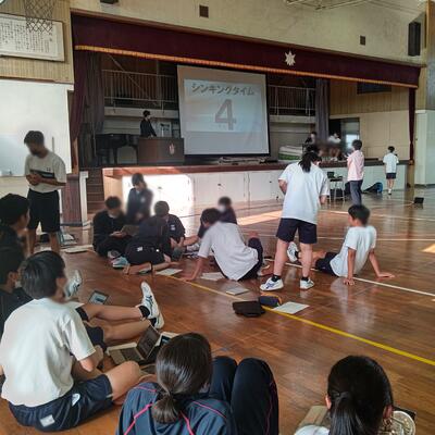 学活の時間、学級・学年の親睦を図るため、生徒達の発案で、全クラスをリモートで繋いでレク大会です。