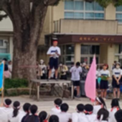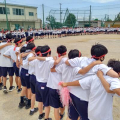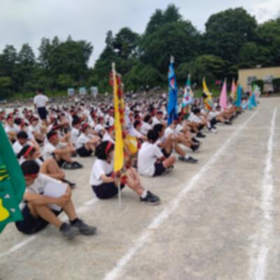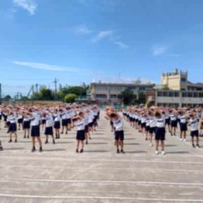 前回は悪天候のため男女別に体育館での実施となり、全校で集まれなかったので…