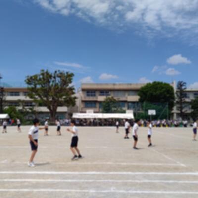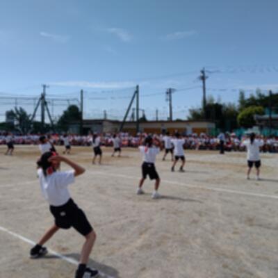 今日は3年生の学年練習。体育委員が中心になって生徒主体で進みます。