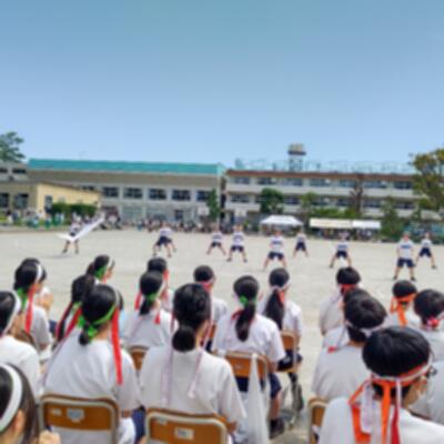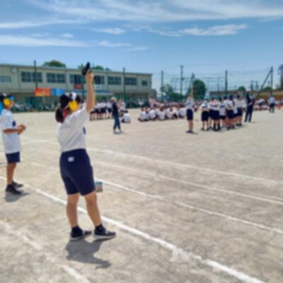 体育委員の指示をしっかり聞いて、全校が動きます。