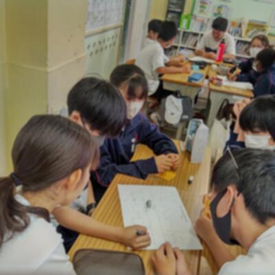 SDGsの目標から自分が感心のあるものを選び、同じものを選んだもの同士がグループになって「その目標が達成できないと未来はどうなってしまうか」話し合っています。