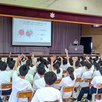 1年生では学活の時間に、学年全体で千葉大学が開発した全10回の予防教育プログラム『勇者の旅』を実践しています。