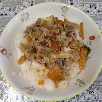 ということで、疲労回復メニュー「豚肉トマト丼」✨