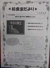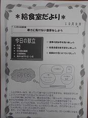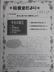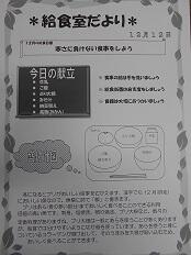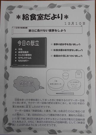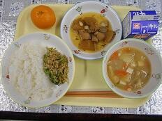 本日の給食は、ご飯・ぶり大根・味噌汁・納豆和え・果物(みかん)でした。ぶり大根は煮汁が大根に染み込み、大根の程よい甘さと、ぶりの柔らかさでご飯がすすみます。納豆和えもご飯にぴったりでした。