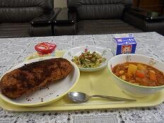 本日は、ココア揚げパン、チリ・コン・カン、茎わかめのサラダ、ヨーグルトでした。揚げパンは程よい甘さでココア風味が食欲をそそります。チリ・コン・カンはトマト風味の味が揚げパンの甘さと良く合います。茎わかめも歯ごたえがあってさっぱりしています。
