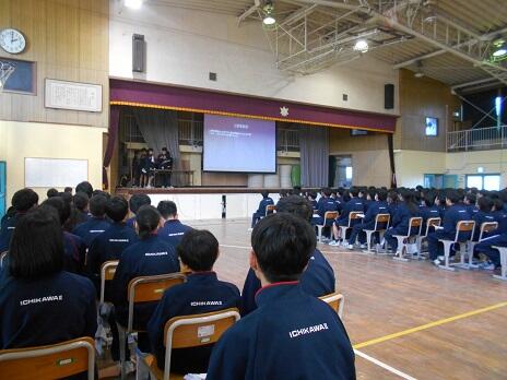 本日の5時間目、1年生の校外学習の発表がありました。各学級の代表の班が、自分たちの見学した場所をパワーポイントにまとめ、発表しました。どの班も素晴らしい発表でした。1年生も力がついてきましたね。