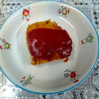 ミートローフはおからの優しい食感ながら肉の味もしっかり感じられ、たっぷりかかったケチャップがよく合いました。