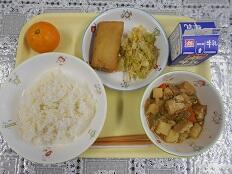 本日は、ご飯・ひじきの春巻き・生揚げの肉みそ煮・じゃことコーンのナムル・みかんでした。ひじきは春巻きにして食べると、ボリュウム満点で、食べ応えがありました。肉みそ煮は少し甘めの味付けでご飯が進みました。さっぱり味のナムルとの相性も良かったです。