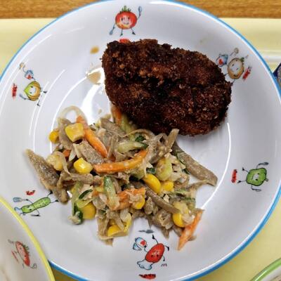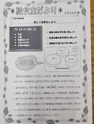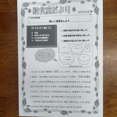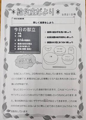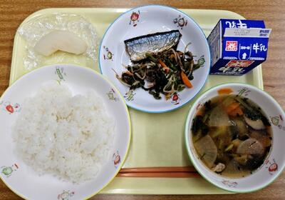きのこたっぷりのけんちん汁、和梨のゼリーとともに、爽やかな秋晴れの日にぴったりの献立でした!