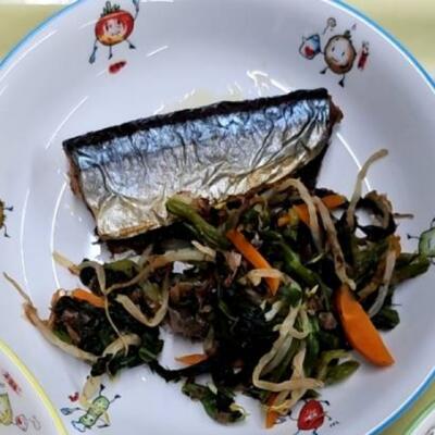 枝豆の緑とニンジンのオレンジが見た目にもきれいで、赤味噌の味付けが食欲をそそり、ご飯が進みます。