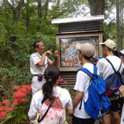 一日目の午後は、市川自然博物館の学芸員さんの案内で、自然観察園を散策します。