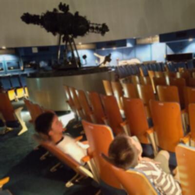 散策が終わり自然の家に戻ると、あらためて「入所のつどい」を行って、自然の家の中にある、プラネタリウム観賞。