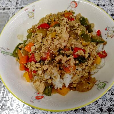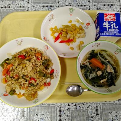 バジルが効いた本格的な味付けが、細かく刻んだ鶏肉やしんなり柔らかく炒めたピーマン・ニンジン・玉ねぎなどの野菜によく染みて、ご飯がどんどん進みます。
