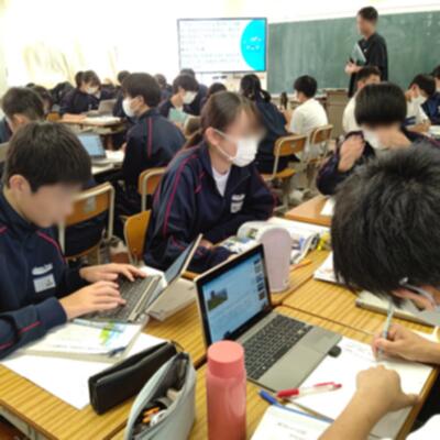 ニ中では「個別最適の学びと協働的な学びの実現」等を共通の研究テーマとし、全教員による研究授業を教科ごとに実施しています。